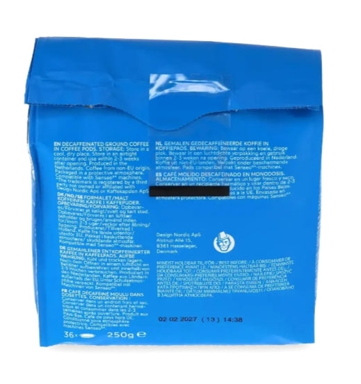 Voici un café qui est fait pour ceux qui veulent un bon café aromatique mais qui veulent éviter les effets de la caféine. Vous pouvez donc profiter d'un café l'après-midi ou le soir sans vous soucier de gâcher votre nuit de sommeil. Ce café est fait de grains Arabica et Robusta à torréfaction moyenne, ce qui lui donne un corps rond et aromatique, fini avec un crema délicieux. Le goût est celui classique du café, avec des tons légers aromatiques et une amertume minime.